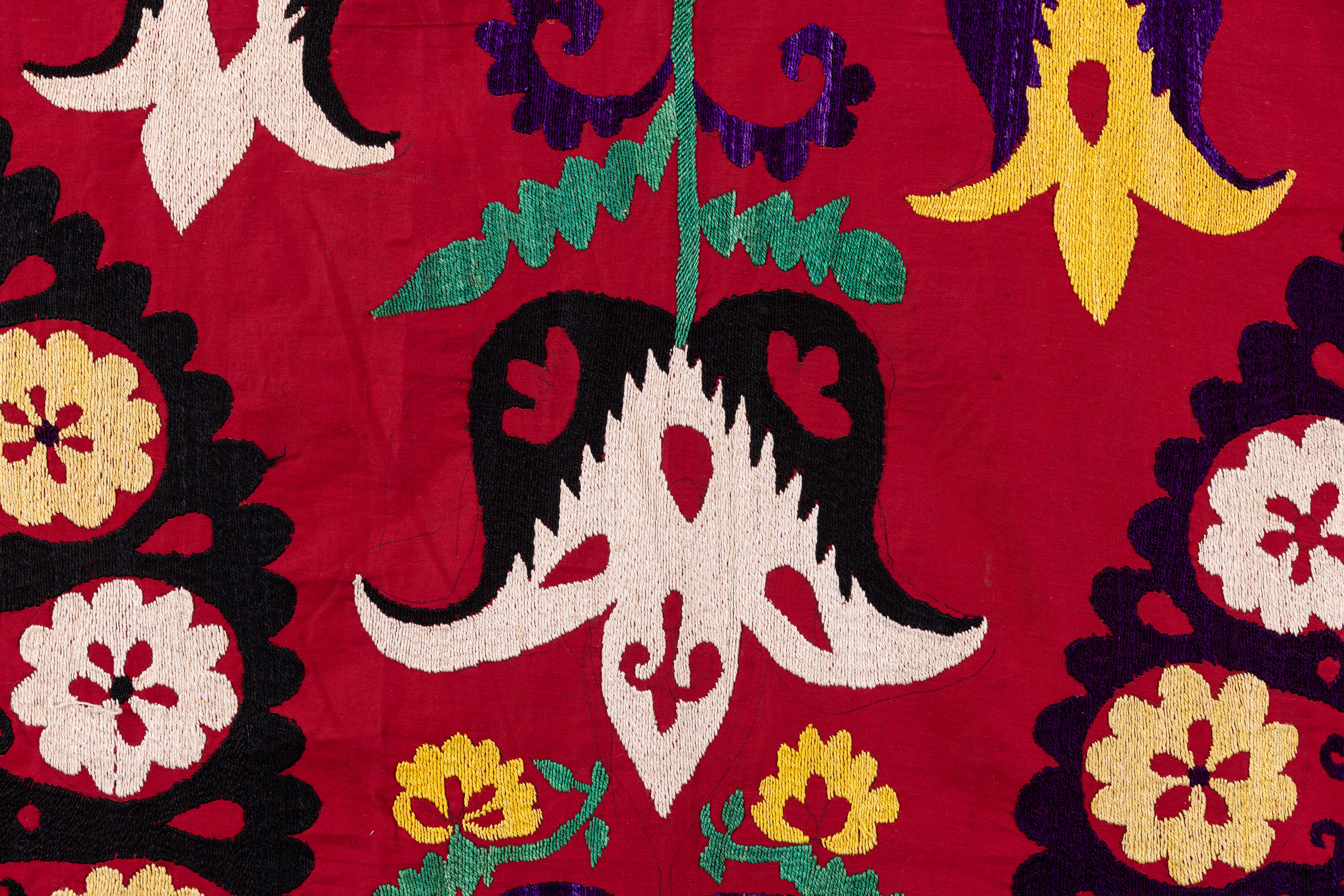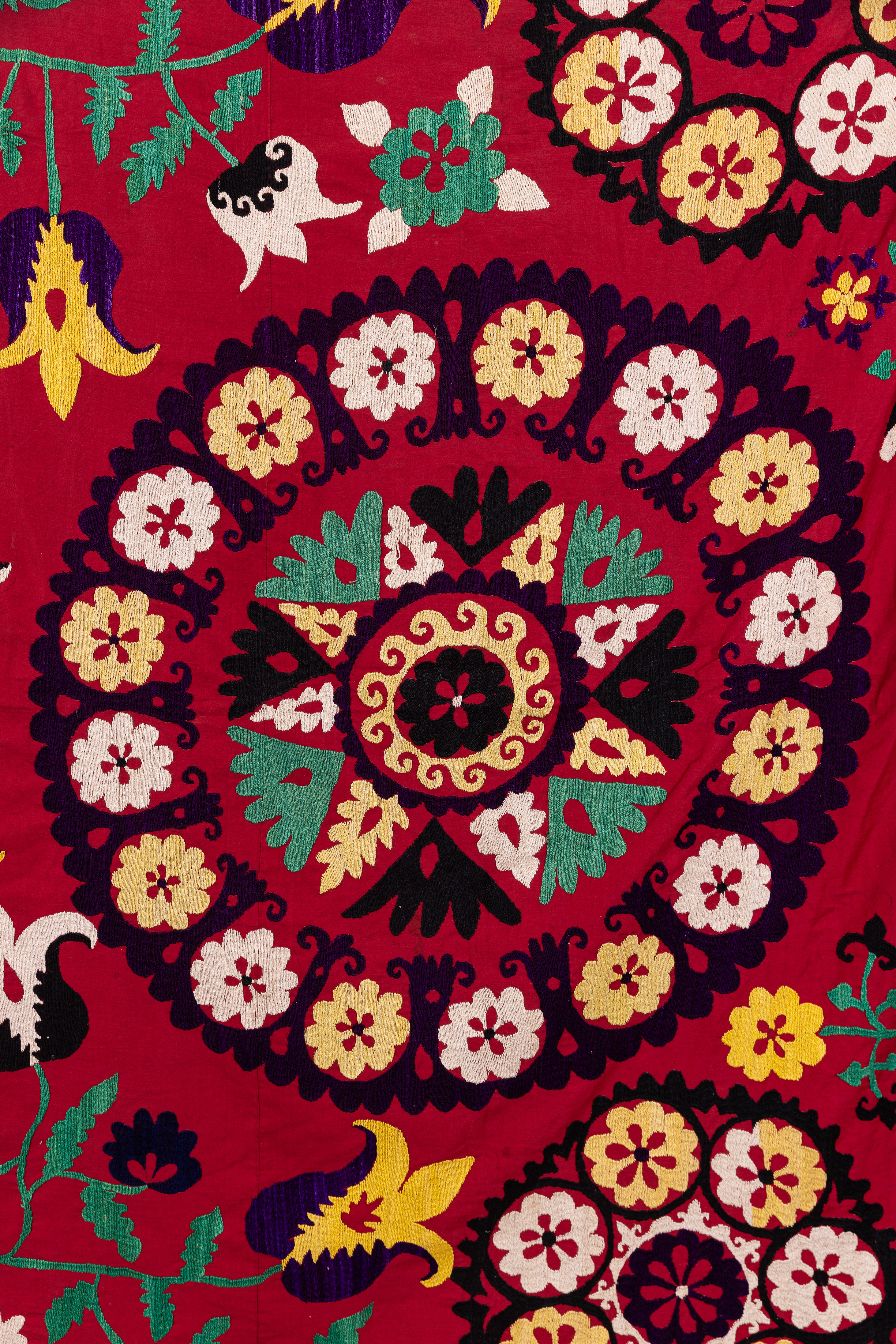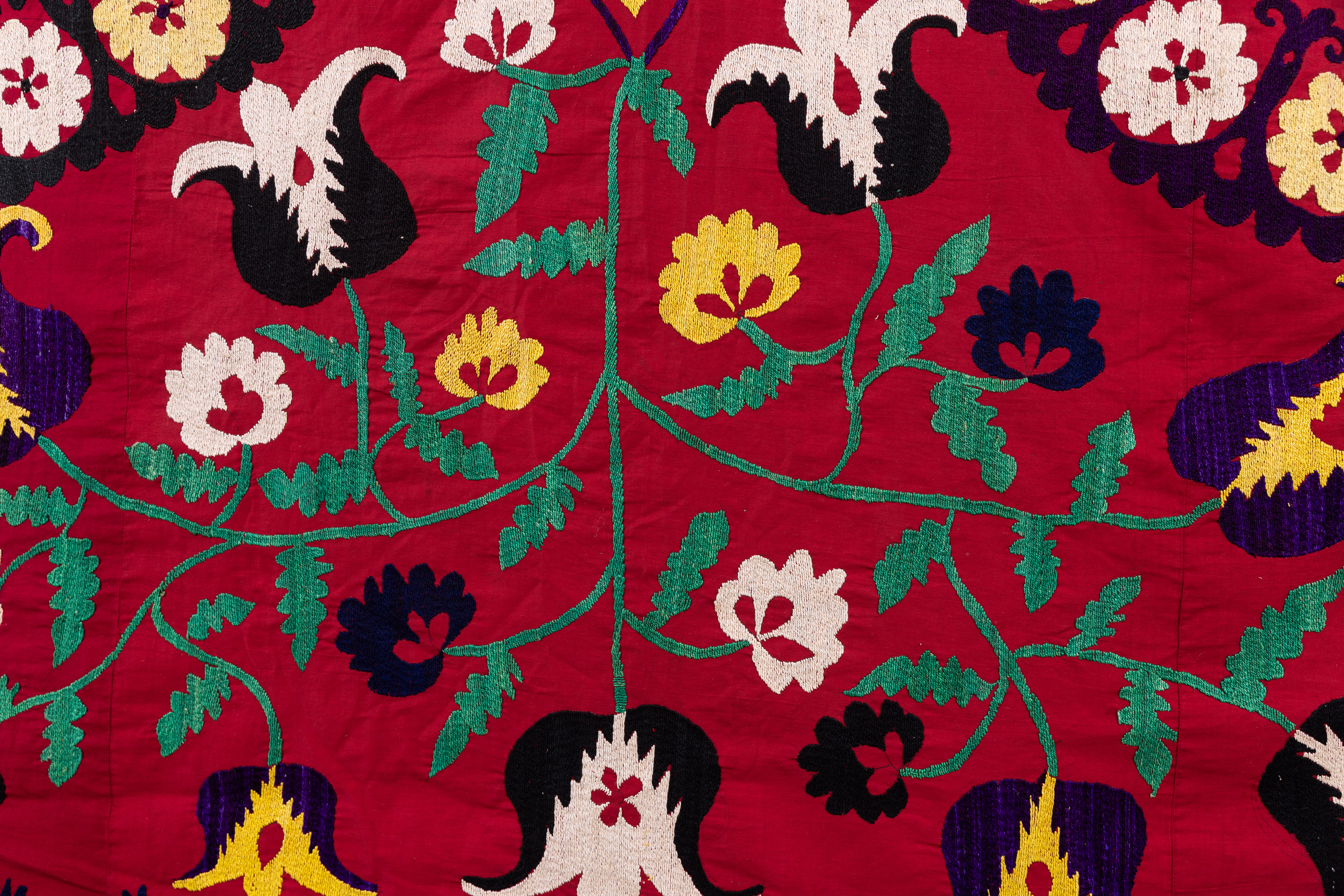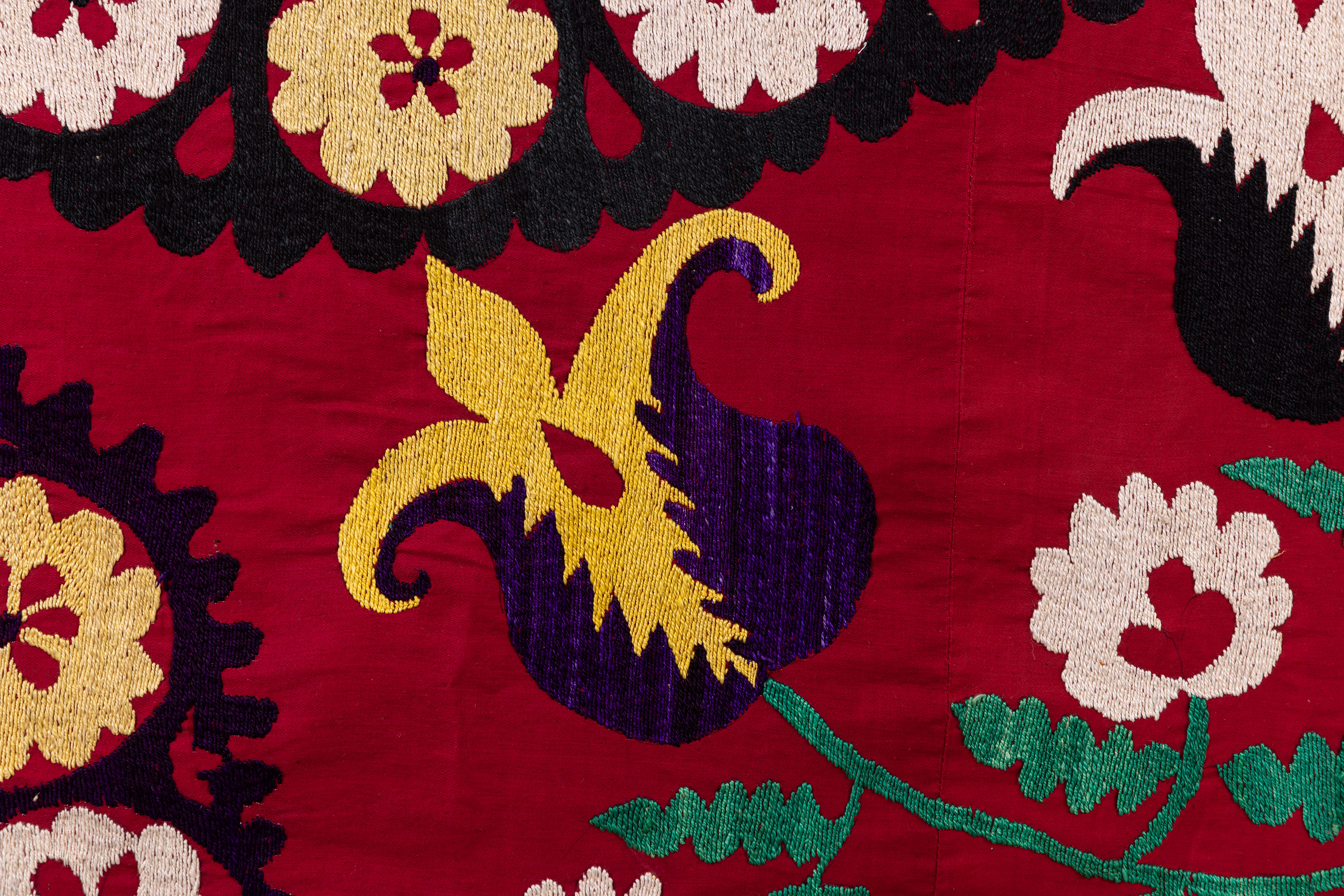 טקסטיל רקום המיועד לתלייה בבית. בקצה אחד של הבד נתפרו לולאות לתלייה. הרקמה נעשתה על גבי צמר, והיא מציגה מוטיב של פרחים בעיגולים לצד פרחים גדולים יותר בעלי צורה טבעית. מסגרת העבודה מורכבת מגבול רקום בצבע כחול וגימור אפור מלבד המקיף את כולה. מדובר בעבודת רקמה גסה, שבוצעה בתפר פשוט.