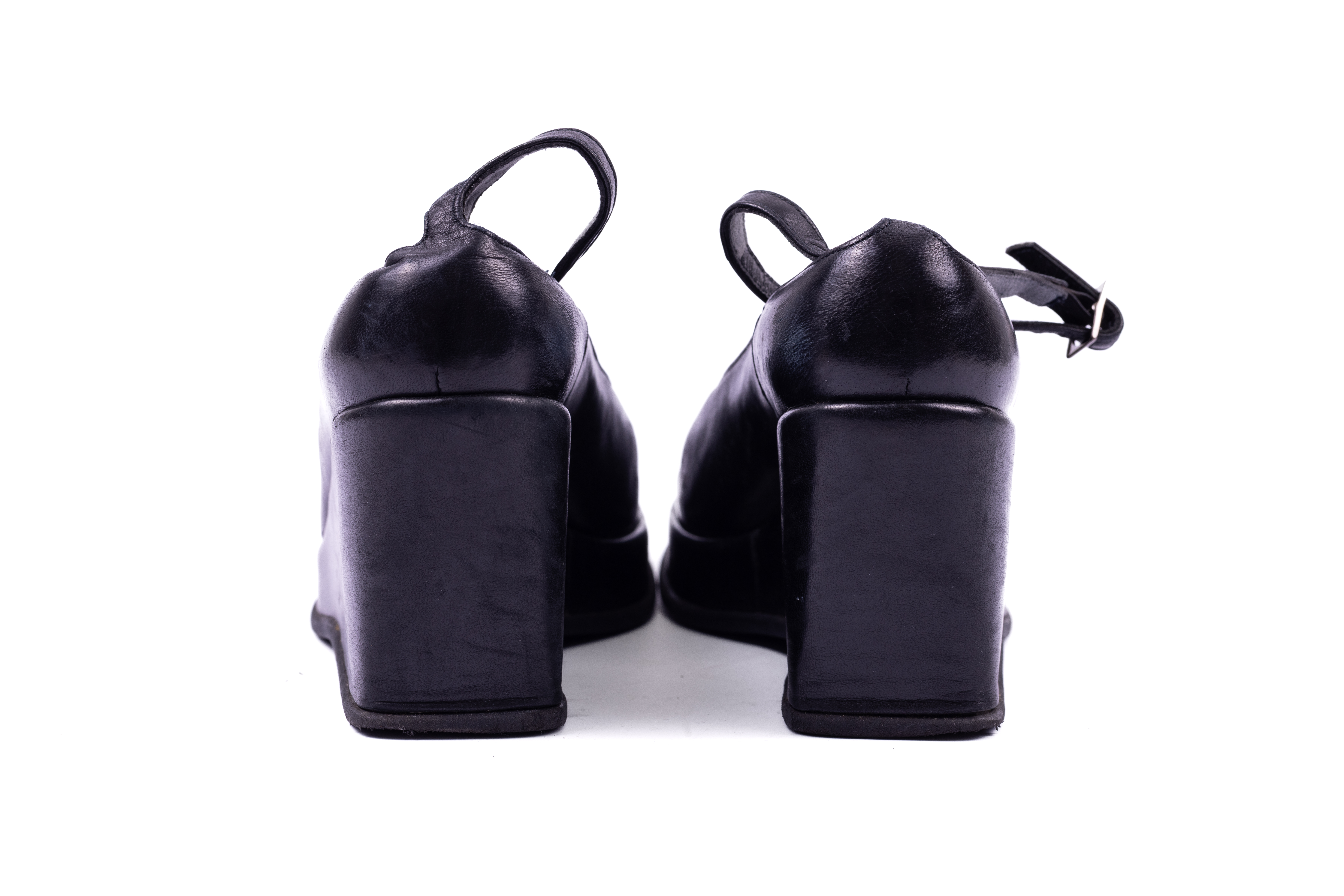 נעליים מבית המעצב Robert Clergerie , הנעליים נרכשו ע"י טוני בקאן צרפת. נעלי עקב פלטפורמה בעיצוב מינימליסטי, עשיות עור שחור חלק. לנעליים רצועה עם אבזם כסוף הנסגרת סביב הקרסול.