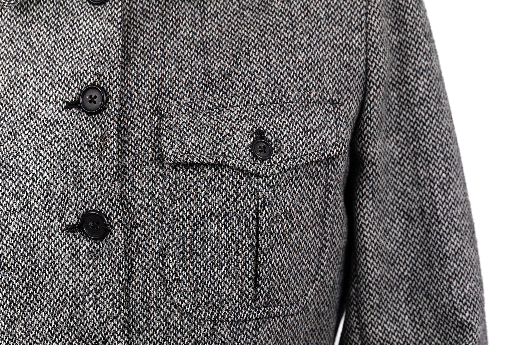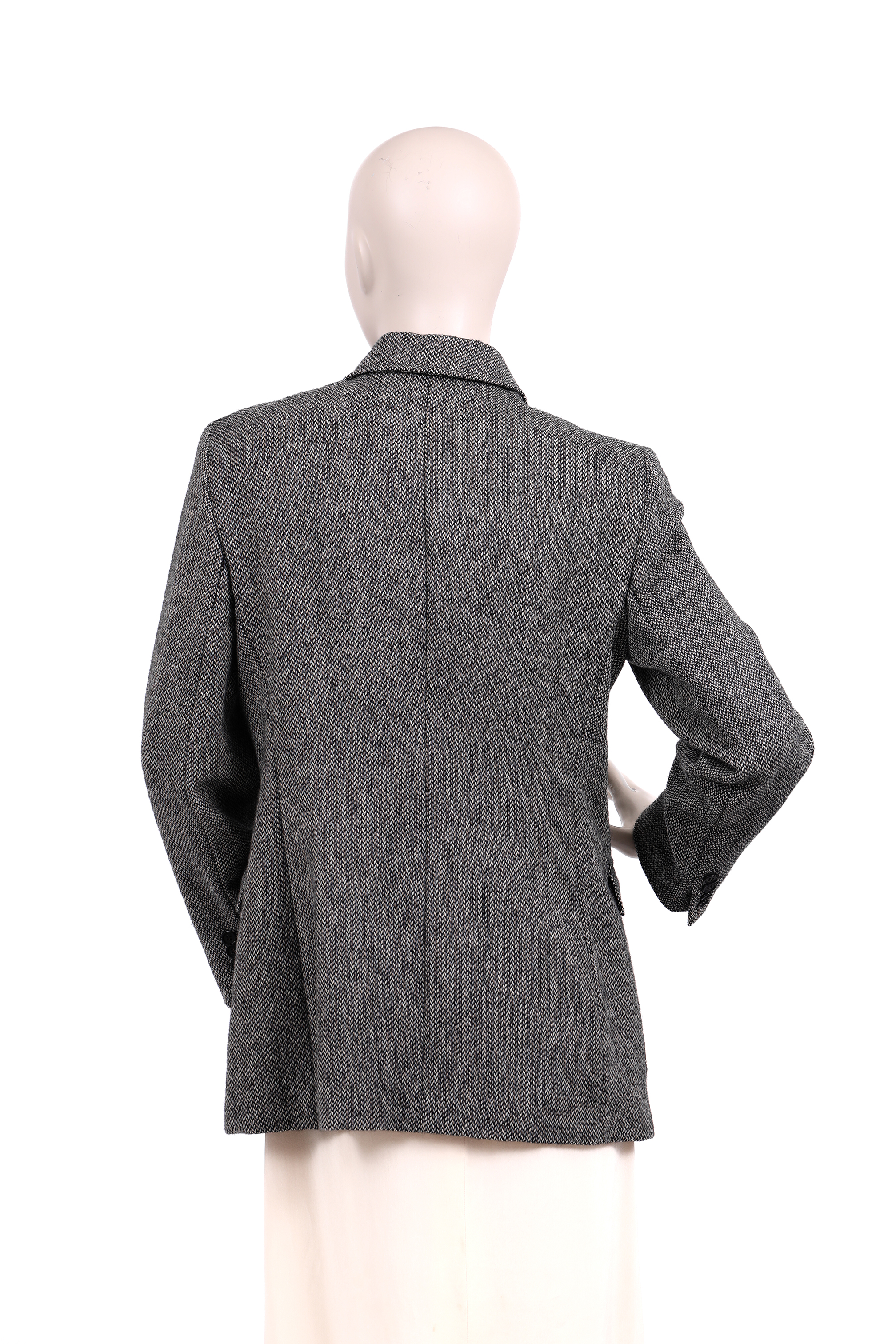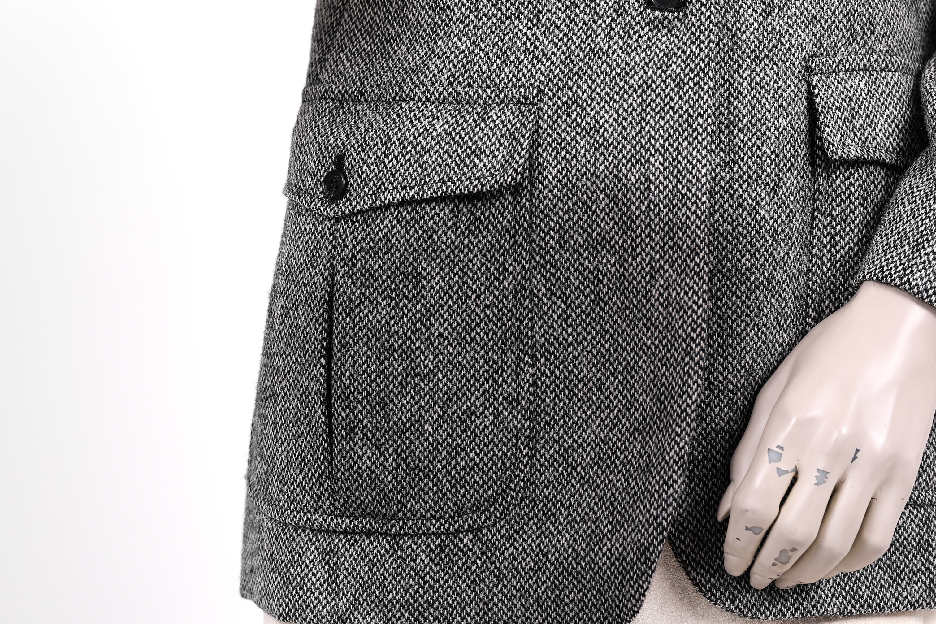 ז'קט ראלף לורן משנות ה-2000, הג'קט עשוי צמר בצבעי אפור-שחור. לז'קט צווארון גברי ללא רגל. הז'קט נסגר באמצעות 5 כפתורים בחלקו הקדמי. לפריט 3 כיסים עם קלאפה, שניים בשני צדדיו ואחד בחלקו העליון, 4 כפתורים בחפת. הפריט מבוטן בבטנה שחורה.