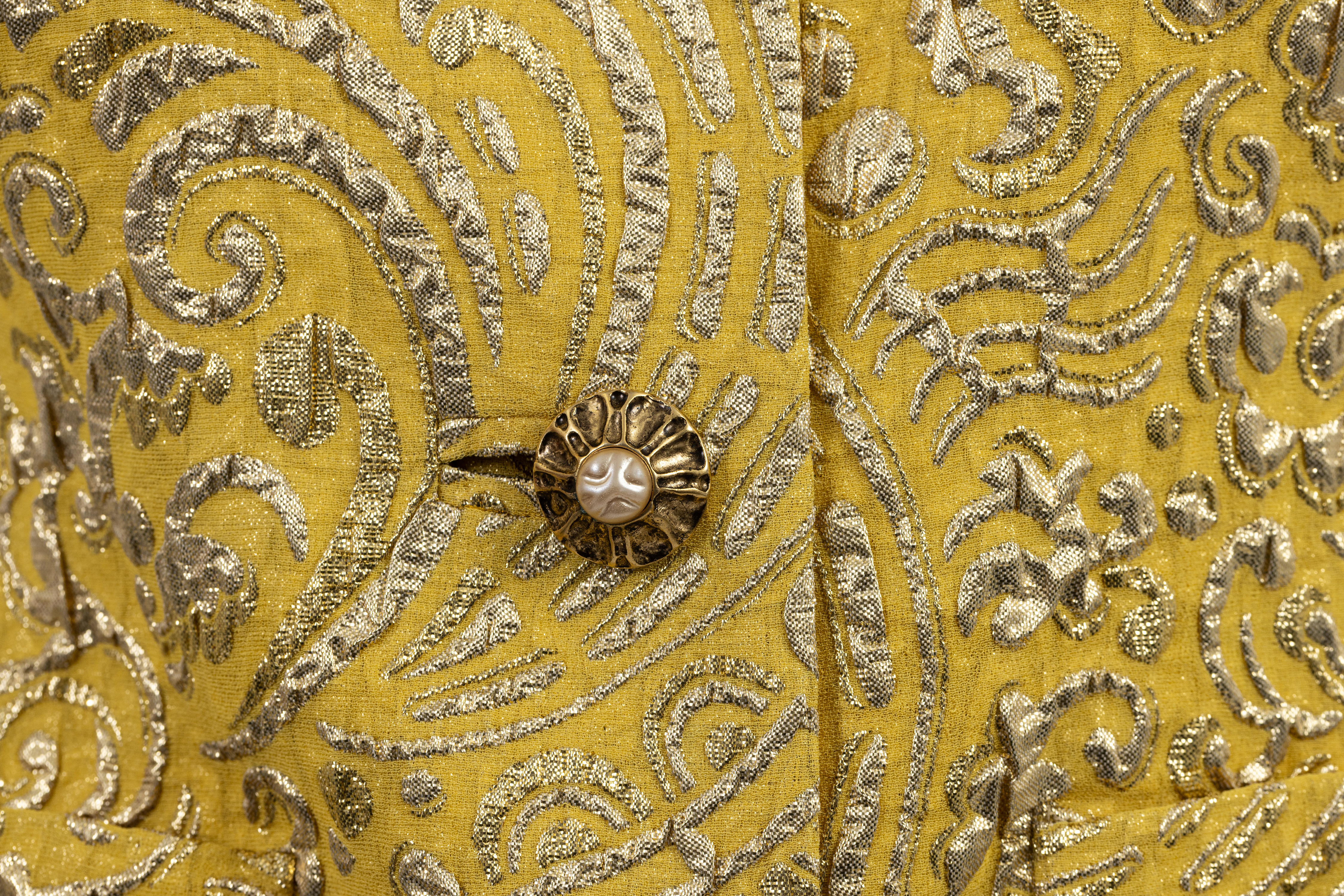 ז'קט ברוקארד של דולצ'ה וגבאנה שנקנה בבוטיק "אמור". לפריט התוויות המקוריות מהחנות. הז'קא עשוי בד ברוקארד בצבעי צהוב וזהב, יש לו שרוולים קצרים, צווארון בובה ושני כיסים בחלקו הקדמי. לצווארון של הפריט ישנה פתיחה גם בגב. לג'קט כפתרה עם ארבעה כפתורים זהובים עם קישוט דמוי פנינה בחלקו הקדמי. אותם הכפתורים נמצאים גם על הכיסים של הפריט. לפריט בטנה בצבע צהוב.